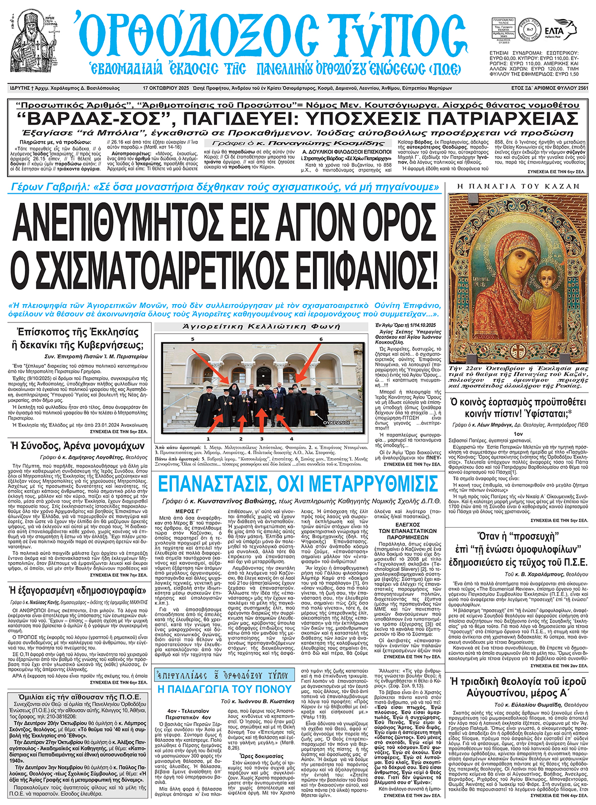 Πρωτ. 4709 Ἀριθ. Διεκπ. 2172 Ἀθήνα, 29 Σεπτεμβρίου 2025 Πρός τήν Ἱερά Ἀρχιεπισκοπή Ἀθηνῶν τίς Ἱερές Μητροπόλεις […]