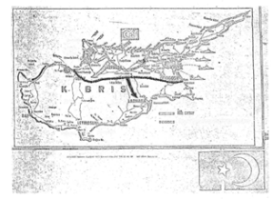 Χάρτης που εκδόθηκε στην Κωνσταντινούπολη πριν τις τουρκικές εισβολές το 1974. (πηγή: Φανούλα Αργυρού «Διζωνική vs Δημοκρατία – Διζωνική Εκτέλεση της Κυπριακής Δημοκρατίας 1955-2019» εκδ. Pastell Editoria Limited Λεμεσός)
