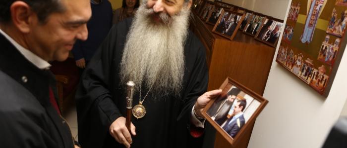 Συμβολικὰ καὶ εἰς ἀνάμνησιν τῆς ἐπισκέψεώς του, ὁ Σεβασμιώτατος προσέφερε στὸν κ. Τσίπρα, ἐκτὸς ἀπὸ ἐκδόσεις καὶ προϊόντα τῆς Μητροπόλεως, καὶ τὴν χαρακτηριστικὴ ἱστορικὴ φωτογραφία μὲ τὴν ἐμβληματικὴ μορφὴ τοῦ Καθηγουμένου τῆς Ἱερᾶς Μονῆς Ἀγάθωνος, μακαριστοῦ Γερμανοῦ Δημάκου τοῦ παπᾶ- Ἀνυπόμονου [καὶ τοῦ Ἄρη Βελουχιώτη], ὁ ὁποῖος ὑπῆρξε ἡγετικὴ μορφὴ τῆς ἐθνικῆς ἀντίστασης, γιὰ νὰ τονίσει ἀκριβῶς ὅτι ὁ Ἱερὸς Κλῆρος πάντοτε ἦταν παρὼν σὲ ὅλους τούς ἐθνικοὺς ἀγῶνες, τόσο στὴν ἐθνικὴ παλιγγενεσία ὅσο καὶ στὴν ἐθνικὴ ἀντίσταση καὶ στοὺς σύγχρονους ἀγῶνες».