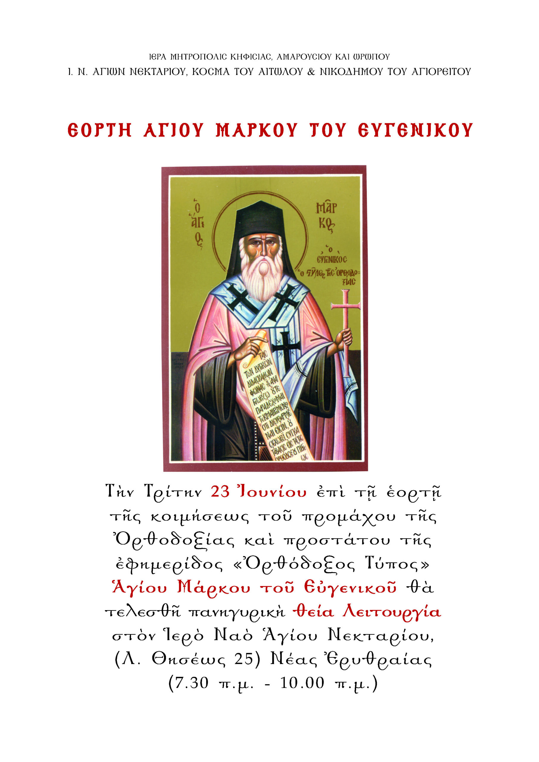 ΕΟΡΤΗ ΑΓΙΟΥ ΜΑΡΚΟΥ ΤΟΥ ΕΥΓΕΝΙΚΟΥ