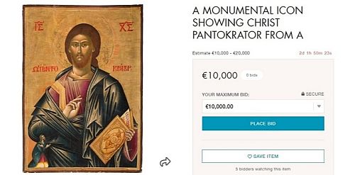 Πρόκειται για μία εικόνα του Χριστού Παντοκράτορα και μία της Παναγίας Πορταΐτισσας. Η τιμή για την πρώτη ανέρχεται στα δέκα χιλιάδες ευρώ και για την δεύτερη στις δώδεκα χιλιάδες.