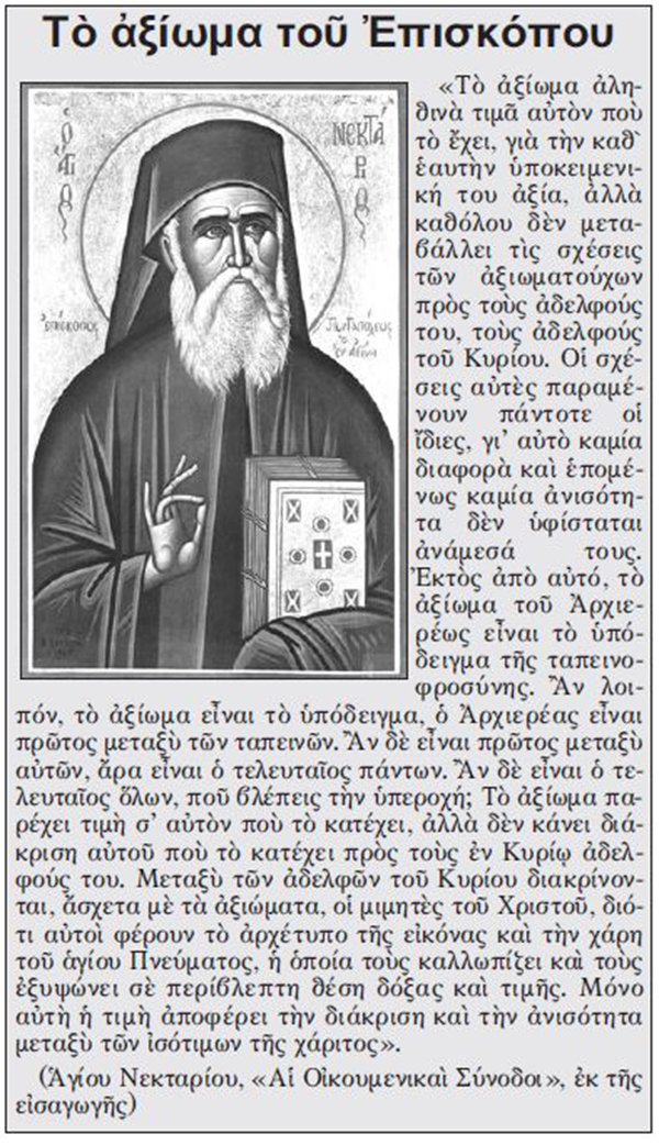 Ὑπάγεται εἰς τὰ νόμιμα δικαιώματα τῆς δημοσιογραφίας νὰ ἐνημερώνη, νὰ κρίνη ἀλλὰ καὶ νὰ ἐλέγχη. Βεβαίως καὶ τιμῶμεν τὸ ἀξίωμα τοῦ Ἐπισκόπου, ὅμως πάντοτε ταπεινά προτάσσομεν τὸ Ἱερὸν Εὐαγγέλιον, τοὺς Ἱεροὺς Κανόνας καὶ τὰς παρακαταθήκας τῶν Ἁγίων Πατέρων.