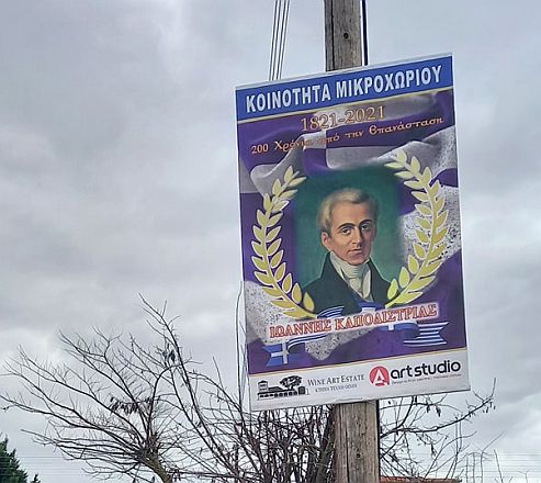 Μεγάλα πλακάτ με τις μορφές των Ηρώων της Επανάστασης κοσμούν από την Πέμπτη 11 Μαρτίου 2021 όλο τον κεντρικό οδικό άξονα της Κοινότητας από την είσοδο έως την έξοδο του.