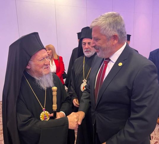 «Μὲ τὸν Ἀρχιεπίσκοπο Ἀμερικῆς Ἐλπιδοφόρο συναντήθηκε στὸ Λονδίνο, προχθές, ὁ περιφερειάρχης Ἀττικῆς Γιῶργος Πατούλης. Ἡ συνάντηση ἔγινε στὸ περιθώριο τῆς ἐκδήλωσης γιὰ τὰ ἑκατὸ χρόνια ἀπὸ τὴν ἵδρυση τῆς Μητρόπολης Θυατείρων. Ὁ σύλλογος «Θυάτειρα» ἀνέλαβε τὴν πρωτοβουλία νὰ καλέσει τὸν Ἀρχ. Ἐλπιδοφόρο, τὸν Γιῶργο Πατούλη, τὸν Χάρη Ρώμα ποὺ συνόδευε τὸν περιφερειάρχη, καὶ τὸν Μάριο Φραγκούλη, μαζὶ μὲ πλῆθος ἀκόμη Ἑλλήνων τῆς διασπορᾶς ποὺ βρέθηκαν στὸ Λονδίνο γιὰ τὴν εἰδικὴ λειτουργία ποὺ ἔγινε στὸν Ἱερὸ Ναὸ τῆς Ἁγίας Σοφίας ἀπὸ τὸν Ἀρχιεπίσκοπο Μεγάλης Βρετανίας Νικήτα καὶ τὸν Ἀρχιεπίσκοπο Ἀμερικῆς Ἐλπιδοφόρο. Τὸ ἴδιο βράδυ παρατέθηκε gala dinner, ὅπου παρέστησαν ἐπιφανῆ μέλη τῆς ἑλληνικῆς ὁμογένειας καὶ τοῦ City!».