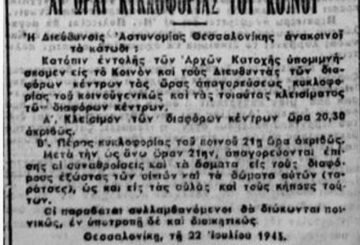 Η Διεύθυνσις Αστυνομίας Θεσσαλονίκης ανακοινώνει τα κάτωθι: Κατόπιν εντολής των Αρχών Κατοχής υπομιμνήσκομεν εις το […]
