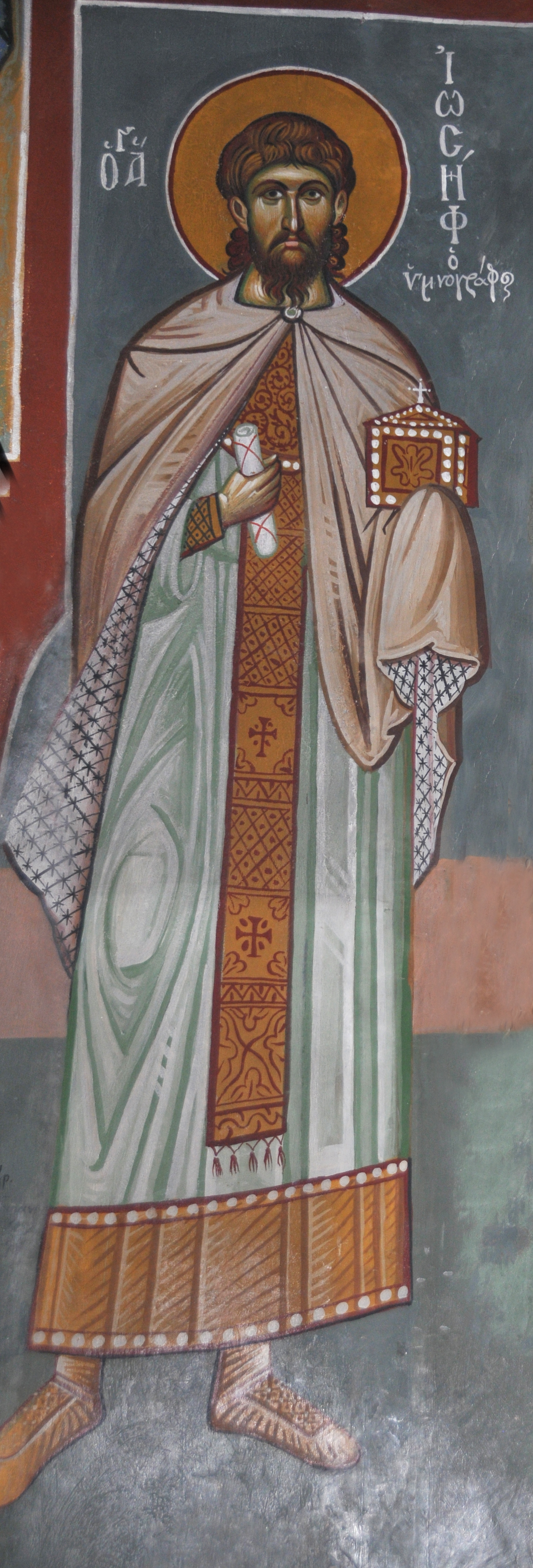 After a while, he met Saint Gregory of Decapolis, a holy and literary man and travelled with him to Constantinople, where for a period of time they were both cloistered in the church of the Holy Martyr Antipa. There, Joseph kept struggling in respect of obduracy and other hardships of the body. Due to the rise in iconoclasm, the Christ fighting heresy, he was encouraged by some pious men to leave for Rome in 841.